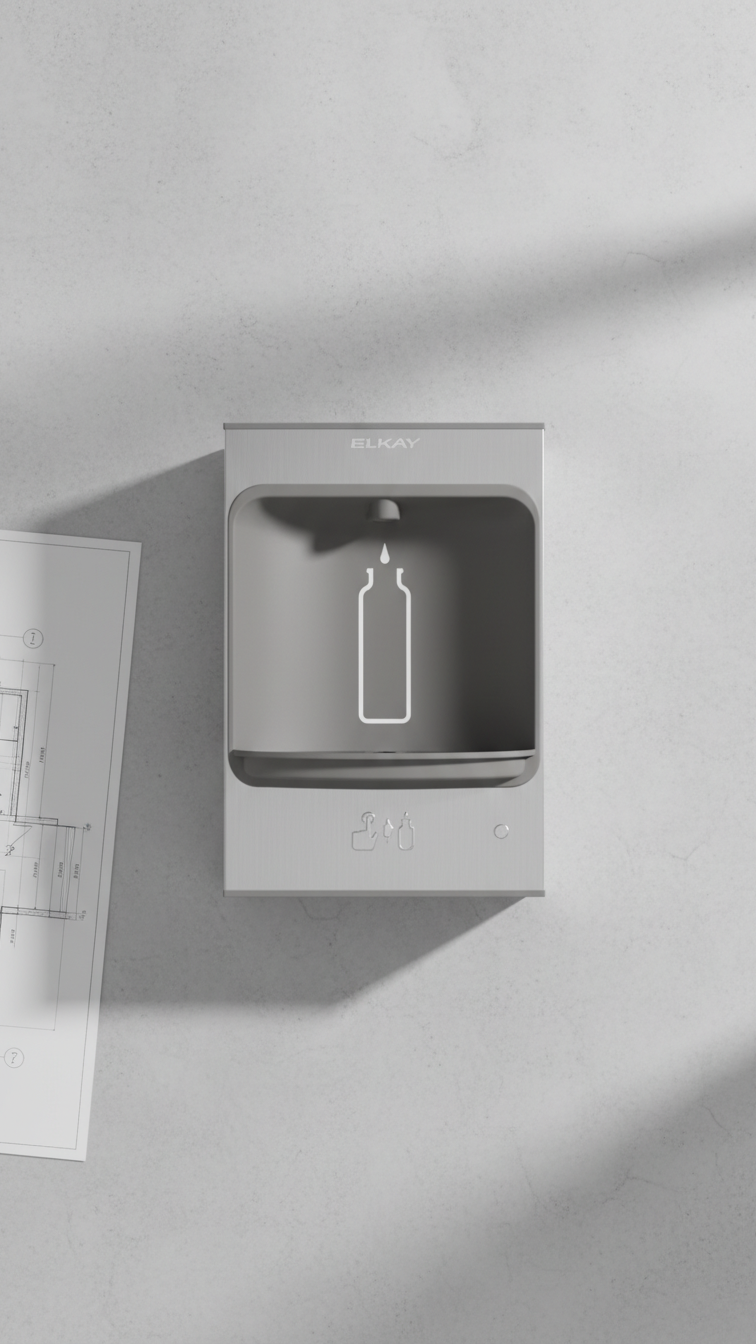 The Elkay EMASM is a mechanically-activated, surface-mount bottle filling station designed for indoor environments. It delivers quick, hygienic 1.5 GPM fills via simple push-button. No electricity required—ideal for spaces with limited wall depth and electric access.