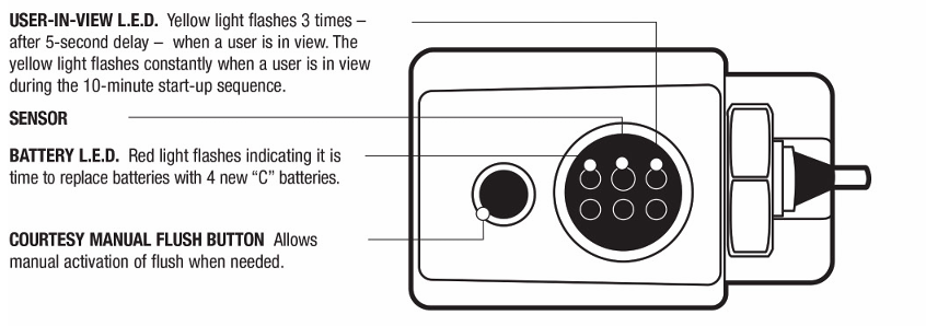- Electronic Override Button: Ensures flushing capability during maintenance or sensor downtime.