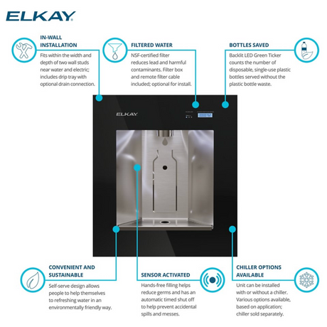 Elkay LZWSM8K | In-wall Bottle Filler | Filtered, Refrigerated, Hands-free, Mounting Frame Included