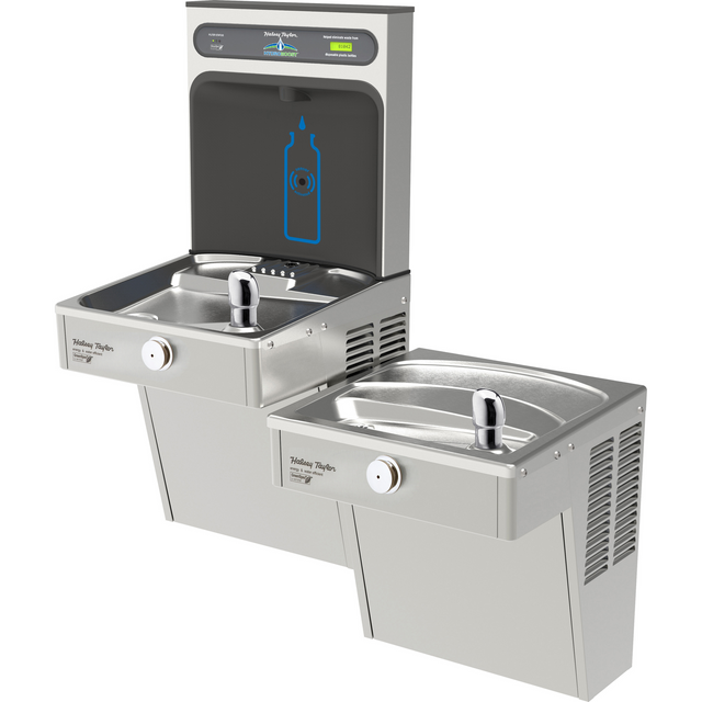 Halsey Taylor HTHB-HVRGRN8BL-WF | Wall-mount Bi-level Bottle Filling Station | Filtered, High-efficiency chiller, HVR-style fountain