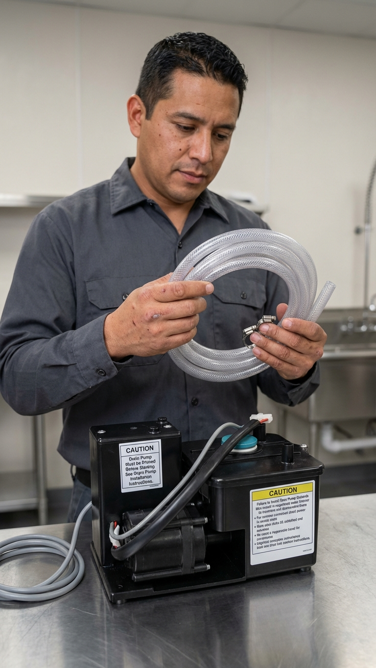 - Pump Capacity: Capable of pumping drain water from undercounter icemakers, ensuring efficient water removal.