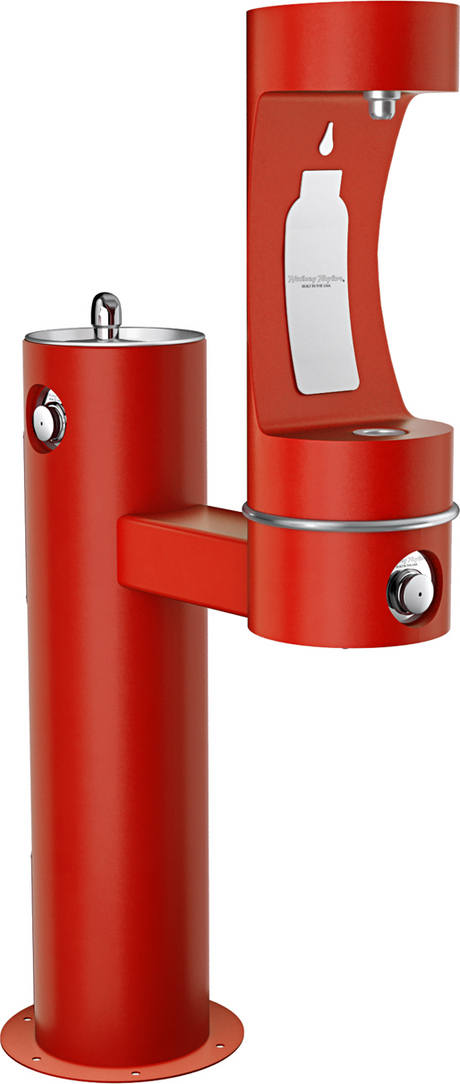 You can configure the bottle filler on the left, middle, or right side, with options for zero to two drinking fountains per unit. Additional features include attached dog fountains and 12 different color finishes for personalization.