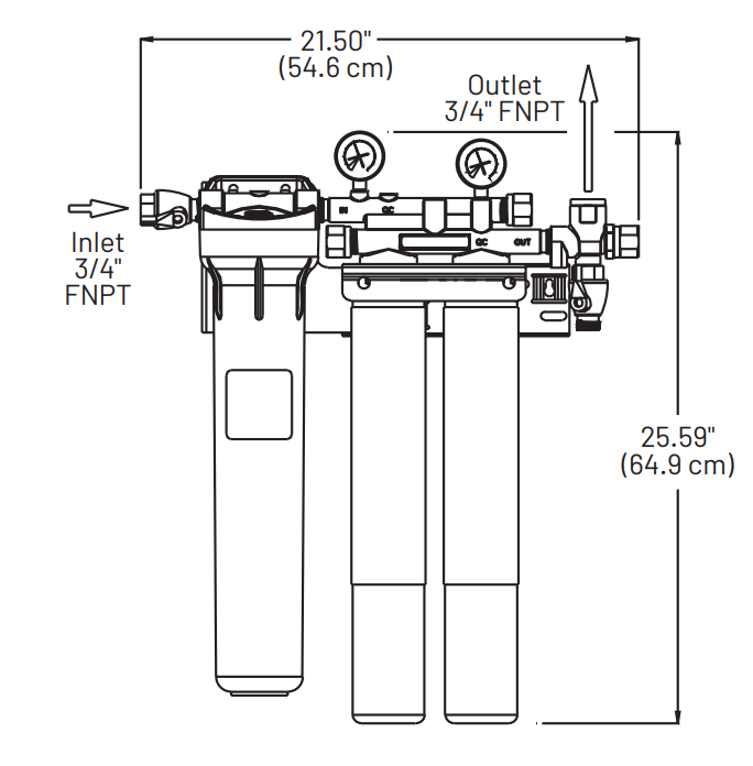 - Integrated Prefilter: The 20" integrated sediment prefilter extends the life of the primary filters by removing larger particles before they reach the main filtration system.