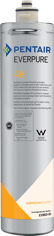 - Superior Filtration: The Everpure 4H uses precoat submicron technology to reduce particles as small as 0.5 microns, ensuring clean, clear water for better-tasting beverages.