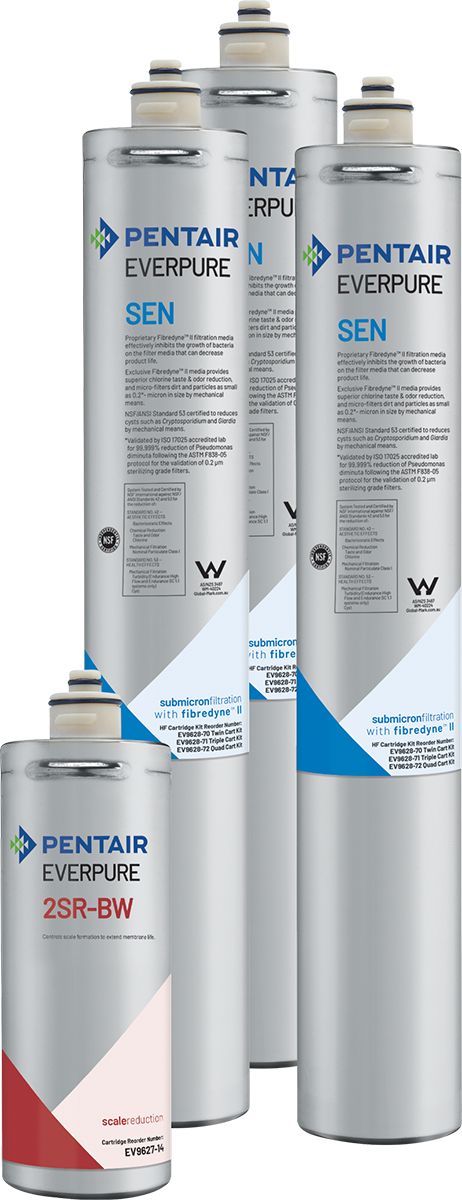 The Pentair Everpure EV962881 Endurance SC Triple Cartridge Kit delivers superior water quality for high-volume fountain and combination applications. Featuring proprietary Fibredyne media, this system reduces chlorine taste and odor while micro-filtering particulates to 0.2 microns, ensuring great-tasting beverages and extended equipment life.