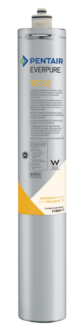 The Pentair Everpure EV969271 7FC-S is a high-capacity commercial water filtration cartridge designed to deliver superior contaminant reduction for fountain beverages and ice machines. Featuring advanced Fibredyne II media with antimicrobial protection, this filter provides exceptional 0.2 micron filtration while maintaining optimal 2.5 GPM flow rate.