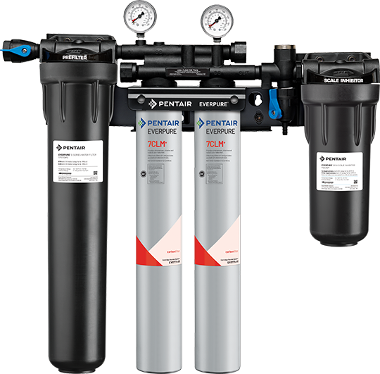 The Pentair Everpure EV977132 High Flow CSR Twin-7CLM+ System is a high-capacity commercial filtration solution that effectively reduces chloramines, chlorine taste, and odor while filtering particulates down to 5 microns. Designed for fountain dispensers, coffee makers, and ice machines, this system delivers consistent quality water with minimal scale buildup.