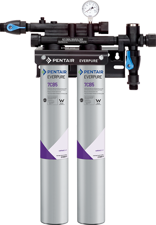 The Pentair Everpure EV979740 KleenSteam II Twin system is a high-performance filtration solution designed specifically for commercial steam applications. Featuring advanced carbon block and Hydroblend media filtration, this system effectively reduces rust, sediment, chlorine taste & odors, and limescale formation to protect valuable steam equipment and deliver quality water.