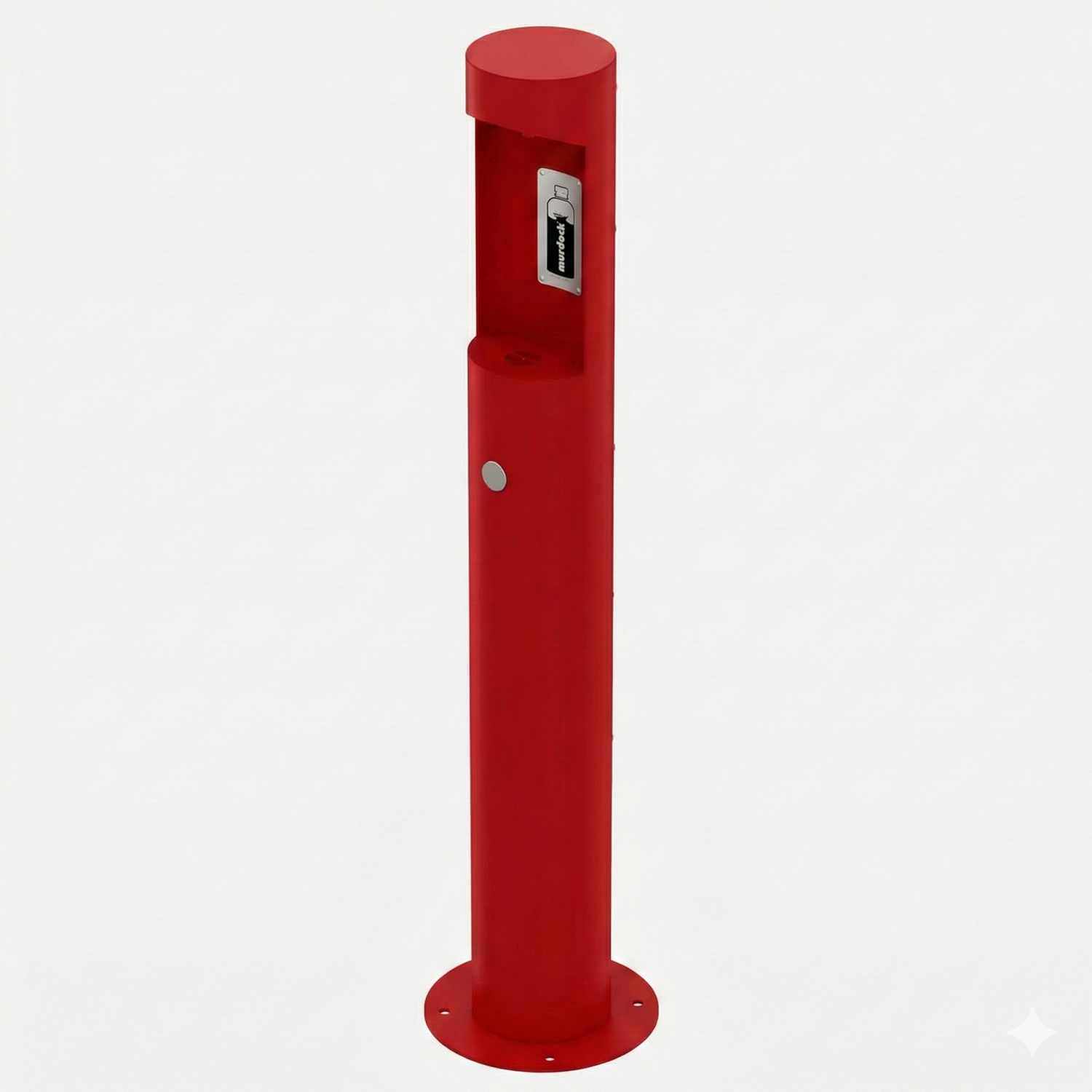 Murdock M-OBF4 | Pedestal Outdoor Bottle Filler with Sensor & Push Button Activation - TEXTURED FIREHOUSE RED / NO FILTER / YES (INCLUDES PET FOUNTAIN) is backordered and will ship as soon as it is back in stock.