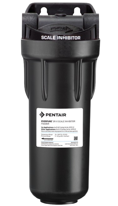A: The Pentair Everpure SR-X Scale Inhibitor System uses Hydroblend compound technology that interferes with the crystallization process of minerals, preventing them from forming hard scale deposits on equipment surfaces and components.